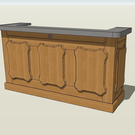 Choix de comptoir (partie supérieure) : chêne massif, Zinc véritable, Etain massif, Granit, Quartz, Laiton.