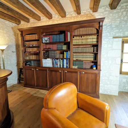Bibliothèque sur mesure en chêne massif pour une belle demeure du poitevin.