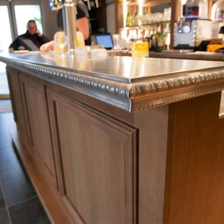 Nous ne vendons pas de comptoir en étain seul, mais uniquement intégré à nos réalisations de bars ou de cuisines.